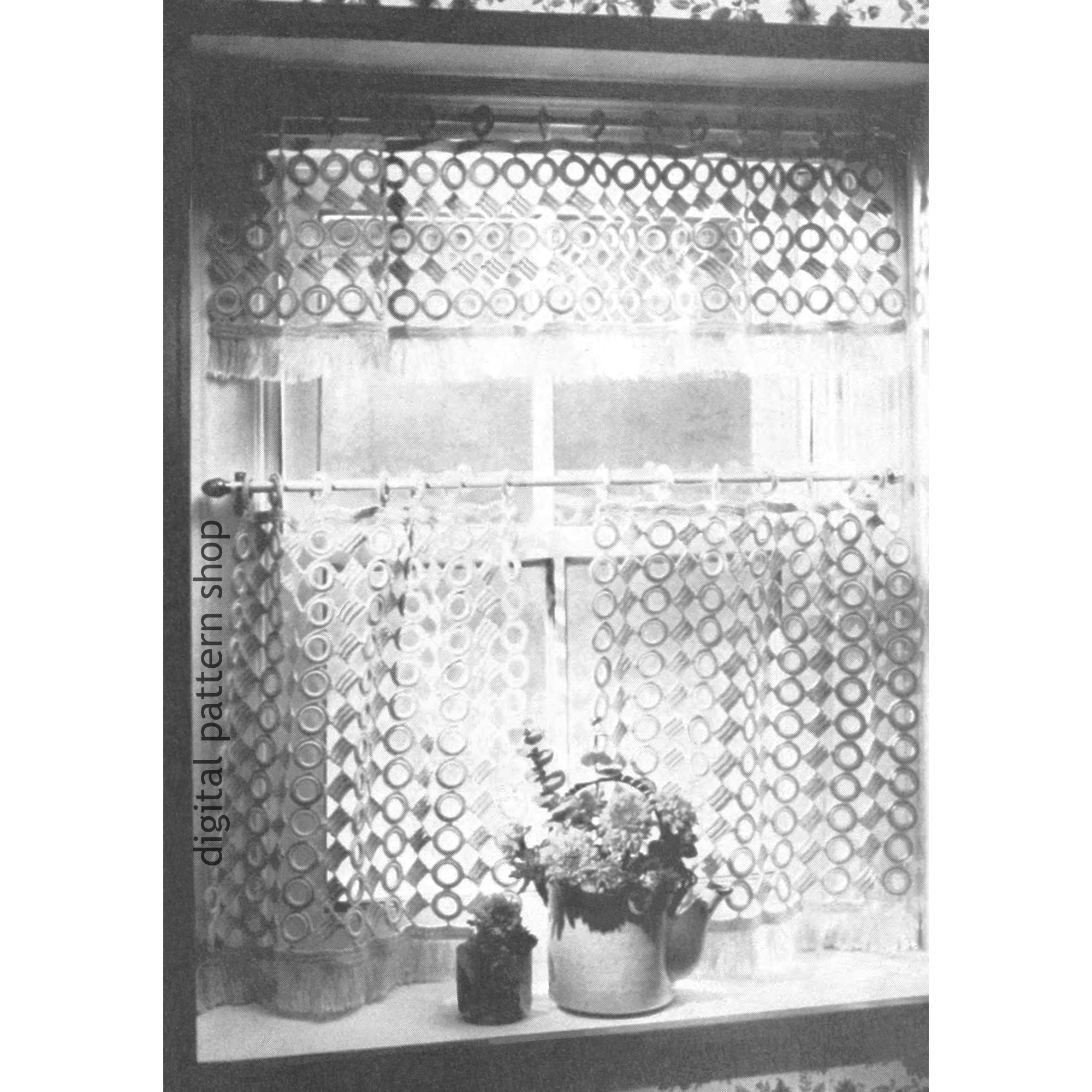 70s Cafe Curtain Crochet Pattern, Circle Squares Window Valance PDF