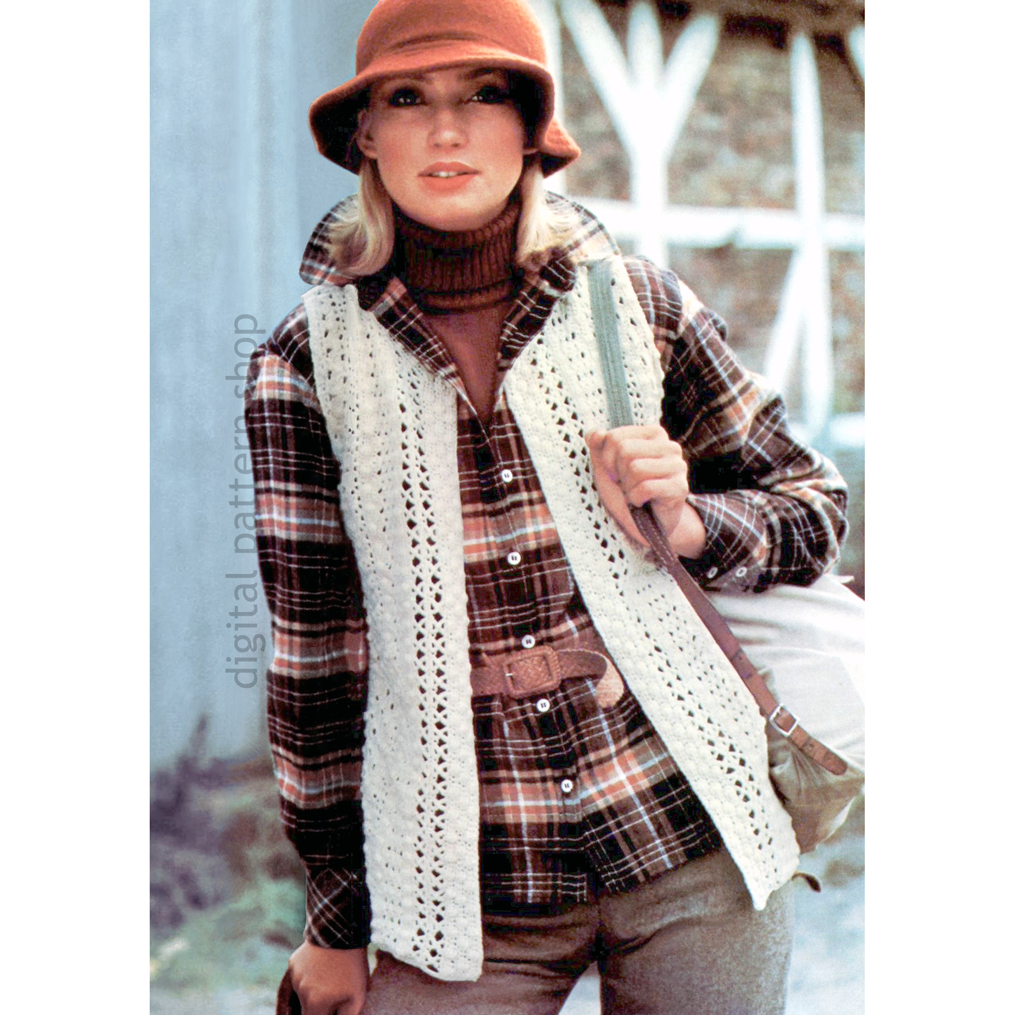 70s Lacy Vest Crochet Pattern, Vintage Lace Stitch Waistcoat PDF