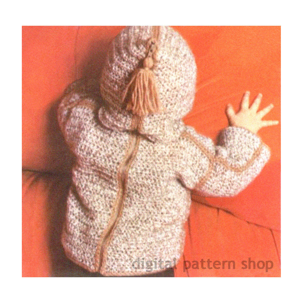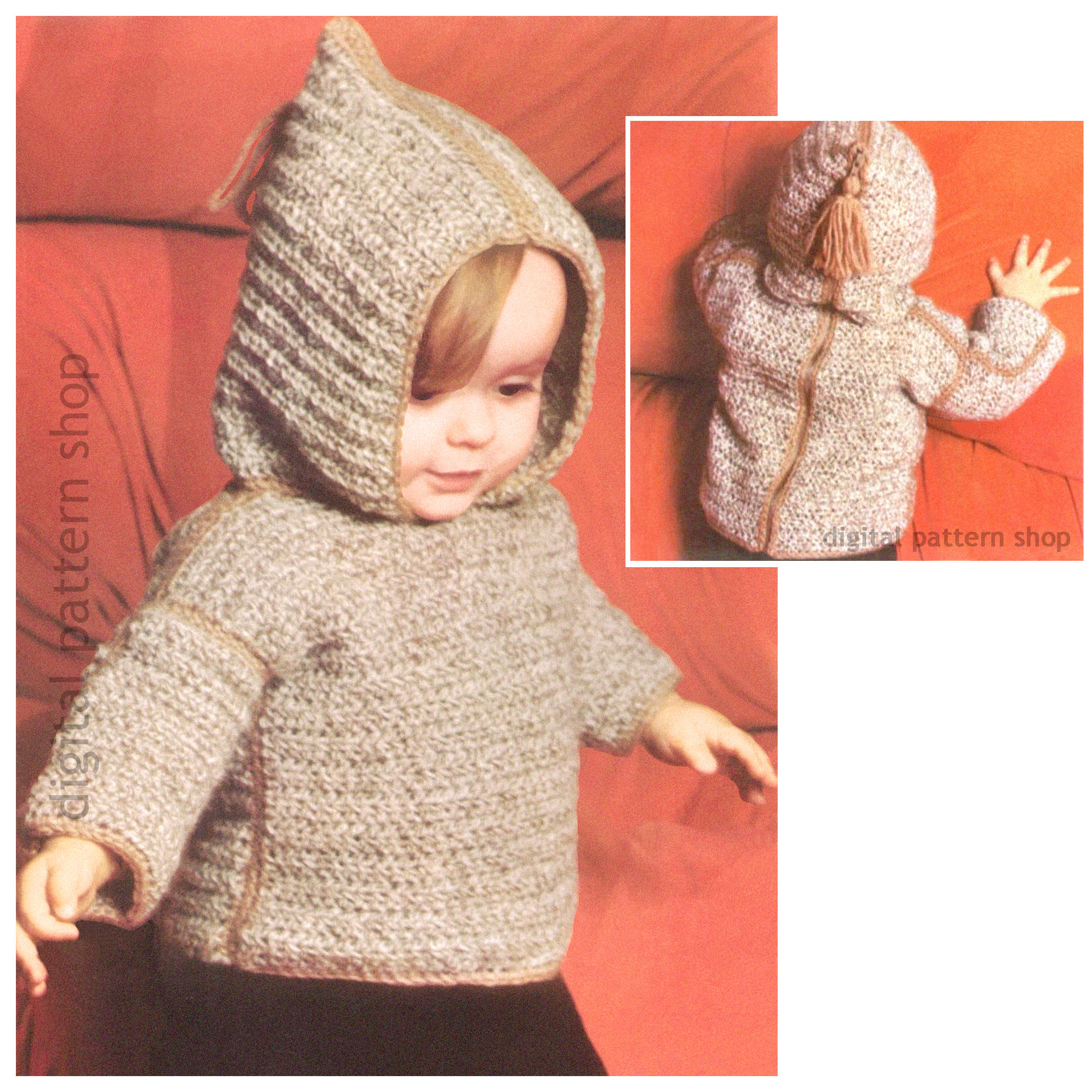 Baby Back Zipper Jacket Crochet Pattern, Vintage Hooded Sweater